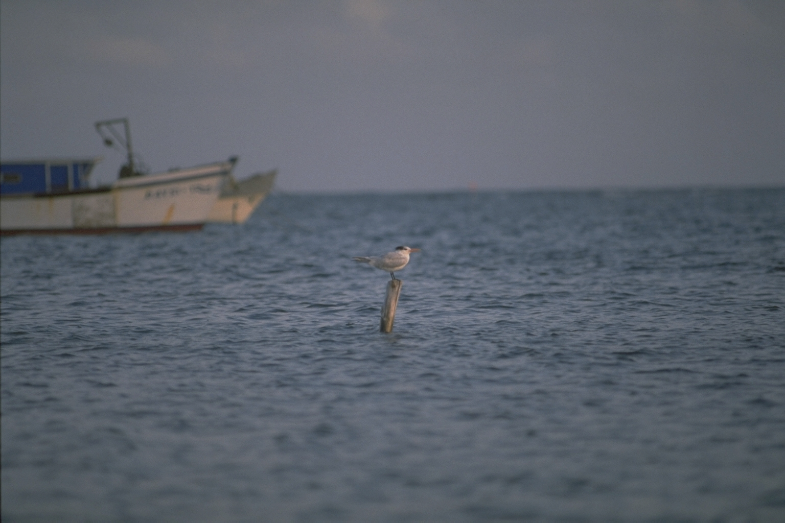 船と、海に立てられた杭で一休みするカモメ(そのまんまだな。。。)