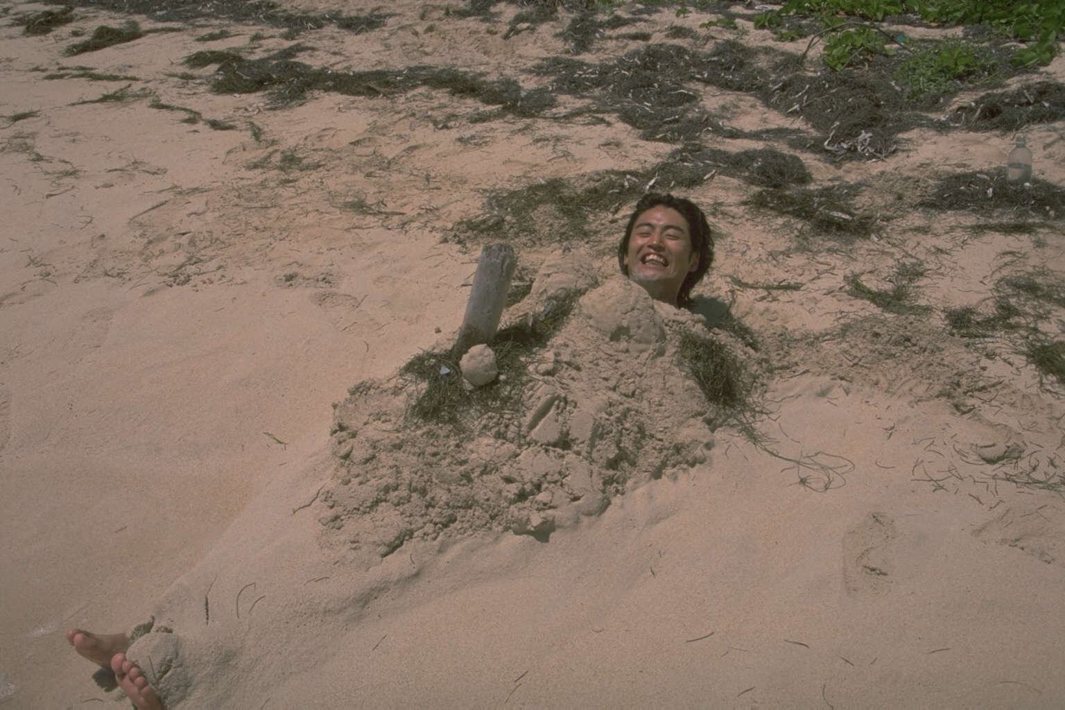 砂蒸しにされる男。なかなか立派なモノをお持ちで。。。 (笑)